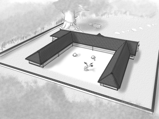 白玉楼全体の資料が見つからなかったので、「コの字型」と判明してる屋敷部分に